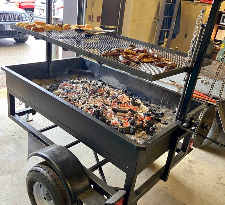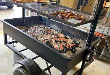 Our Santa Maria Grill is built right on a movable trailer so it can be taken to wherever you need it .